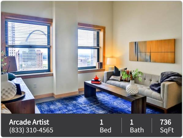At Arcade Artist Apartments, we are designed to embrace and support local artists who have a passion for their art and a vision to foster community. We prioritize affordability while balancing comfort and style. Created by an award winning architecture and design team, the shared work and studio spaces feature a wide variety of unique amenities. Our 1, 2 and 3 bedroom apartments in St. Louis, Missouri are expertly designed to offer a pleasant living experience for all. With cozy interiors, resident-focused studio spaces and an ideal location with stunning historic elements, you can bask in convenience without breaking the bank.