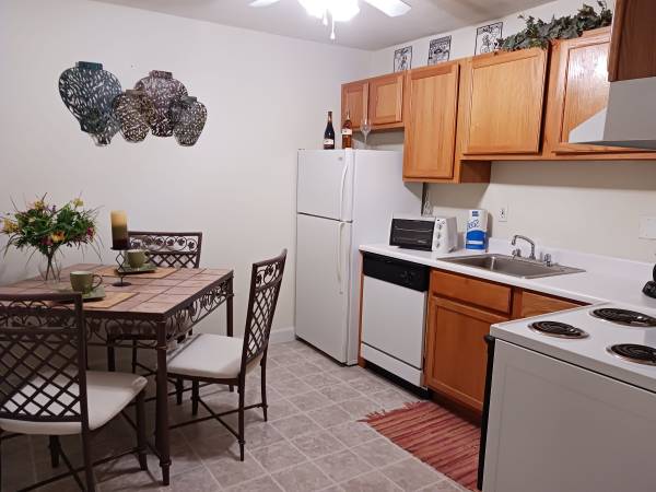 Eat-in kitchen, oak cabinets, matching appliances (including dishwasher!)