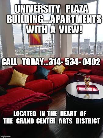 The University Plaza Apartment Building, located at 607 North Grand Boulevard in the heart of The Grand Center Arts District, is the perfect home for the busy urban professional. Listed on the National Registry of Historic Buildings, this dramatic structure was designed in 1918 by Eames and Young and underwent renovation in 1993. So much character and history, so much to do and see!