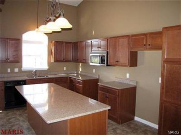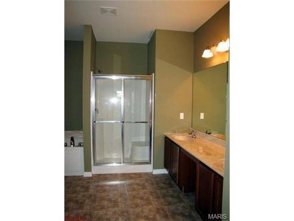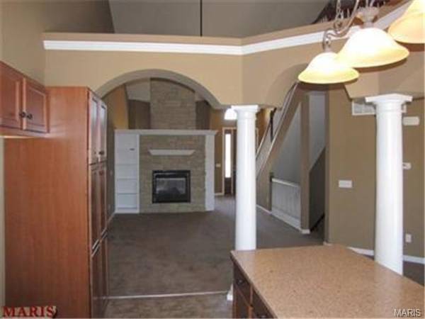This home backs to trees and Bear Creek Golf Course! Very peaceful setting in the beautiful neighborhood of Woodlands at Bear Creek. Walk into this brick and stone townhouse with 10-foot gorgeous wooden and lead glass front door with columns. Spacious main level with a two-sided fireplace with built in bookshelves on both sides in the Hearth and Great room with a bay window. Kitchen with arched doorways, columns, granite counter tops with large center island and tons of cabinet space. Eat breakfast with a view of the trees and golf course with deck access. Main level Master Suite with spacious walk in closet, master bath has double sinks, shower and jet tub for your relaxation. Two car garage leads into nice sized laundry room with a half bath across the hall. Go up the beautiful staircase and enter into a Loft with balcony overlooking the main level. Two more bedrooms on upper level with Jack-n-Jill bath. W/O Lower level, NO Smoking and prefer NO Pets. Owner pays taxes and sub fees.