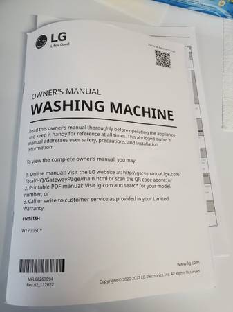 Brand new only used once LG WT7005C washing machine. Our loss your gain! This washer was only used one time! Family member liked an old machine better so we have to take a loss on this one! Retail at all the big stores is $529.