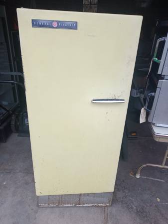 Retro refrigerator in working condition, keep things cold and freezer works.
