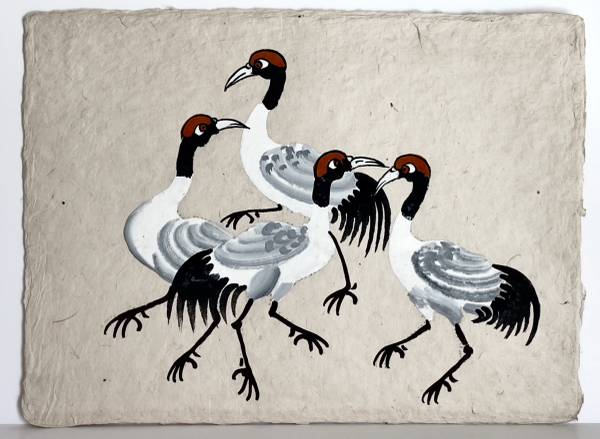 THE ITEM OFFERED is on a papyrus-type paper, made from either pounded plant fibers or recycled fabric, likely the former given the location of its purchase. It is excellent condition and would look spectacular in a BLACK FRAME WITH A DARK RED MAT, both chosen to reflect the bird's natural colors.