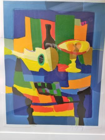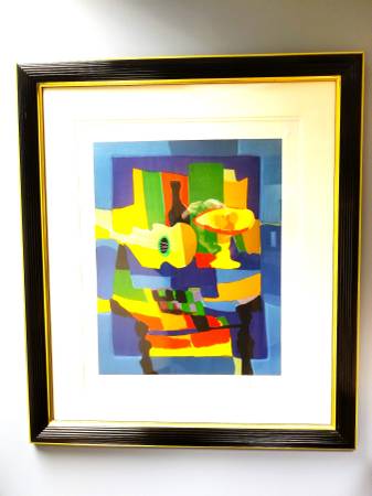 - ART ORIGINAL LITHOGRAPH (GUITAR, BOTTLE, FRUIT DISH - SIGNED/NUMBERED #55 OF 300)
