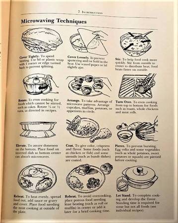 Vintage Betty Crocker's Microwave 8 Inches X 10.5 Inches Hardcover Cookbook with Dust Cover (288 pages) (1981) by Betty Crocker Editors has NEVER been used, so it is in Excellent Condition. This cookbook explains how to use the microwave oven to prepare over 250 delicious dishes--from appetizers and soups to main dishes and desserts--and advises how to choose foods and recipes to use the microwave to its fullest advantage.
