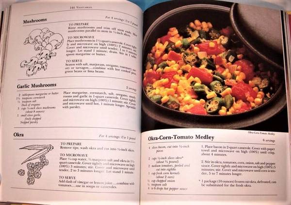 This is a full color cookbook that helps combine the ease of microwaving with the fantastic recipes that are expected from the Betty Crocker kitchens. This is 288 pages of recipes for appetizers, breads, main course, desserts and more. Each recipe has clear step by step instructions.
