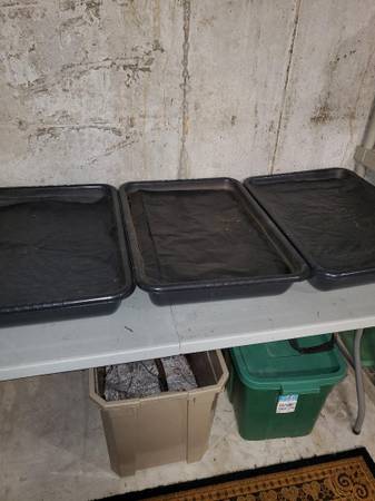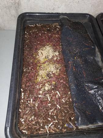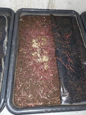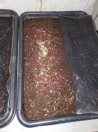 Full vermicompost setup with at least 3000 worms. Comes with 5 trays, sifting rings with 3 mesh sizes, worm chow and bedding. Only 3 bins are full at this point but they reproduce quickly the more space you give them. I can fill approximately 1 bin of castings each month from the 3 full bins I have.