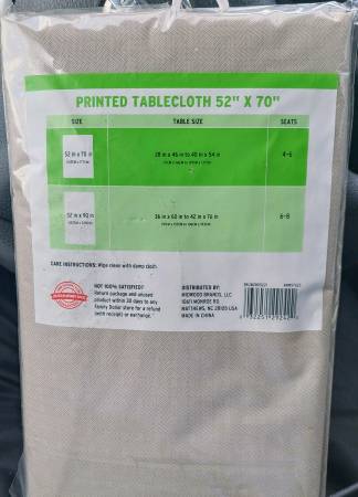 NEW Printed Tablecloth- 52" X 70", Seats 4-6, Flannel Backed, Easy Clean, Sell $5