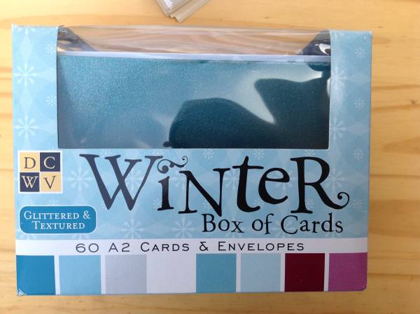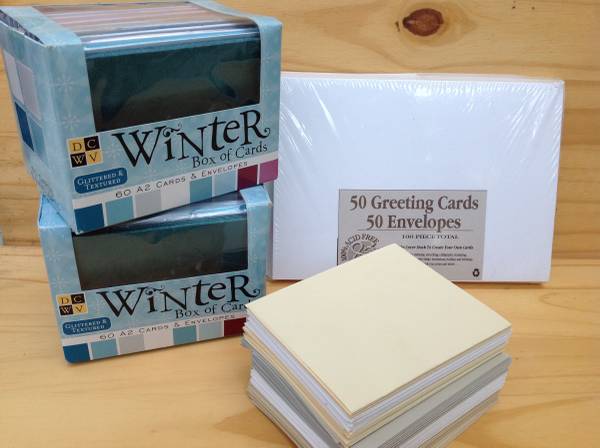 —two 60ct boxes of multicolored “Winter” A2 cards and envelopes **there may be one or two missing from one box, unsure, but not more than that; the colors are depicted along the bottom edge of the box