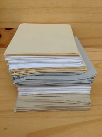 —an uncounted stack of cut and folded cardstock (from half a letter-sized sheet) in white, manila, beige, and taupe (I used these for practice)