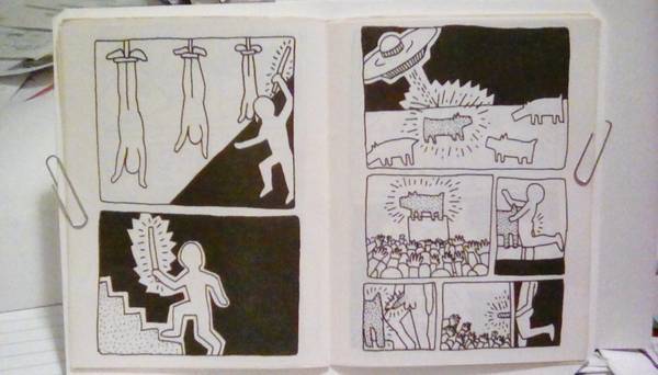 Keith Haring’s first book , reportedly produced in an edition of 500 copies. A number of his dominant themes are already present in this series of narrative drawings which blend graphic sexuality, violence, gender ambiguity and technology with a sense of wit and irony that serves to undermines traditional structures and values.