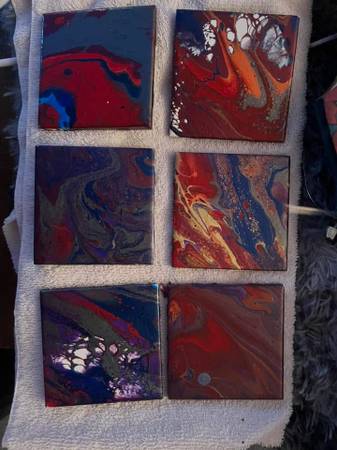 I have several acrylic paintings available for $20-$60. I also have sets of hand painted coasters, switch plate covers and hand painted vases.