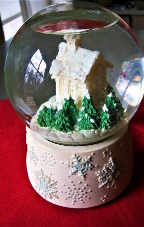 2. Snow falling on house and evergreen trees music box. San Francisco Music Box Company.