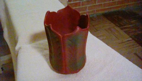 Great Van Briggle Lotus Petal Design Vase And one older cup/ vase Colorado Springs red .. 4-3/4" x 7" tall brown .. 2-3/4" x 6" tall $220. art deco art nouveau ceramic arts pottery