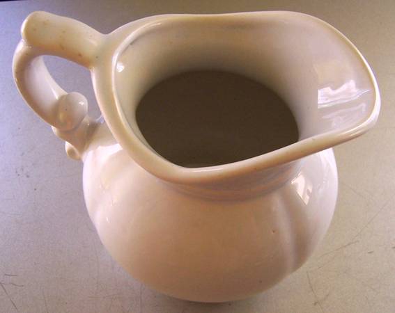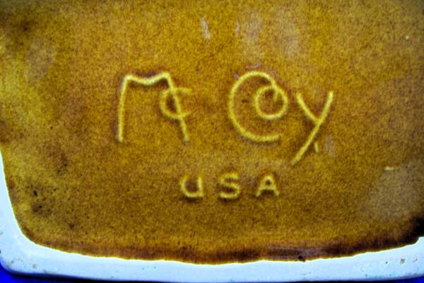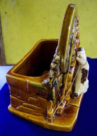 Buy individually as indicated or both for $30. 1. McCoy pitcher with floral display. Measures 6" wide by 5 1/2" tall. $15. 2. Brown McCoy Planter with dog, cat, and spinning wheel. Measures 6 1/2"...