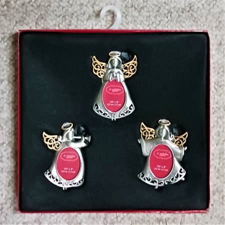 Here for sale are 3 St. Nickolas Square - Angels Remembering Loved Ones - Angel Picture Ornaments. These are new in package but please see pictures to judge the condition of each for yourself. These are really great Christmas ornaments. Put the pictures of loved ones in them (each one holds a 1.5" x 2" picture).