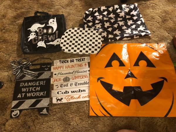 All items used condition. One sign is made of hard cardboard like paper and the corners are bent and apart. The orange bag is ripped $25 for all pick up in south Roxana