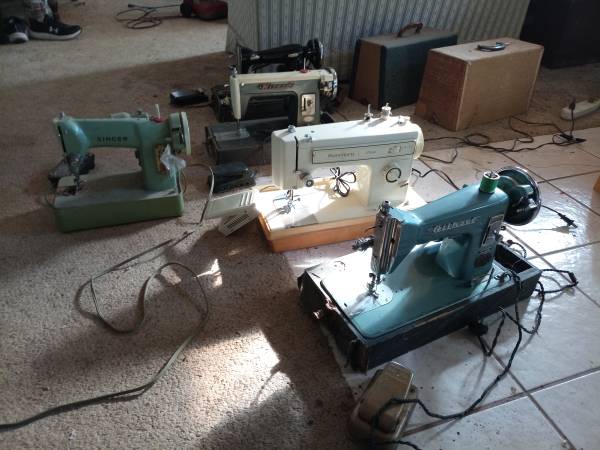 I am selling 5 Vintage Sewing Machines for $300 or you can pick one for $100. The Singer sewing machine powers on but won't work and is missing lid. The Kenmore works great and so does the Wizard sewing machine. The Gilbert sewing machine works but needs a new belt. The needle craft powers on but isn't working. I am located in Sullivan Mo. Call or text 573-25nine-8395