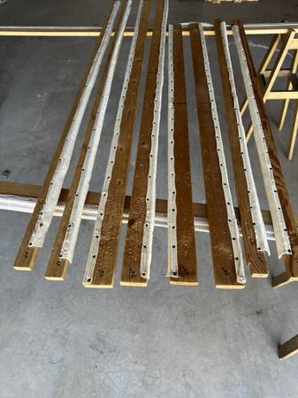 Wood Quilting Frames Two sets of stands and one set of middle stands - each 29" high Four sets of short rails - Two sets at 54" long - One set at 68" long - One set at 72" long Six sets of long...