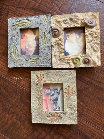 This is an assortment of wood picture frames of various sizes. All but one have glass. Price is for all. 5 x 7 - three 7 x 9 - four 8 x 10 - one Small ones - 2 x 3 Ask about my metal ones. Also, I...