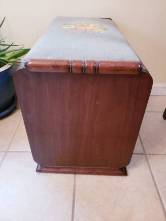 1940's Antique Needlepoint Tapestry Wooden Bench in good condition. Measures 19" Tall x 23" wide x 14" deep.
