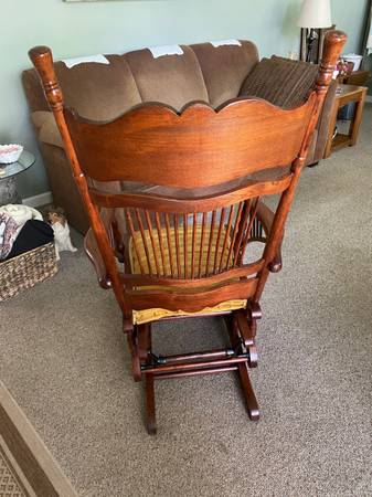 19th century glider/rocker, it’s clean, fabric in good shape, fine inlay wood work, one of a kind decorative piece of furniture