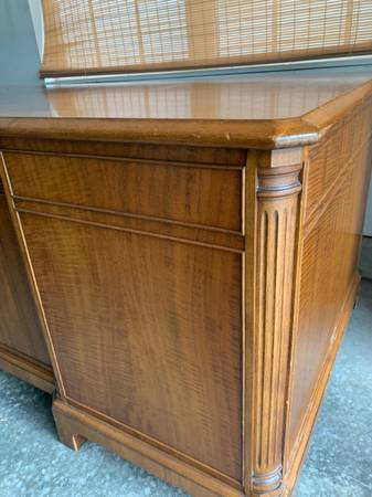 Has drawers on both sides of the seating cubby along with slide out work spaces for those you're meeting with. Take a look at the photos. Feel free to ask questions and I'll do my best to get you answers and/or additional pics.