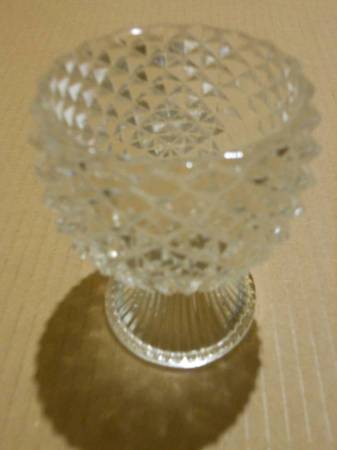 Vintage Crystal Candle Holder from the 1930's. This Crystal Candle Holder has NEVER been used, so it is in Excellent Condition with no chips, cracks, or scratches in the glass. This Crystal Candle Holder is 3.5 Inches Tall and 3 Inches Wide. This candle holder comes from a smoke free and pet free home.
