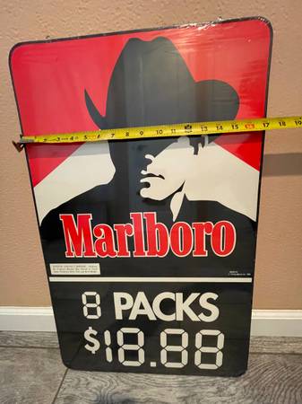 NEW Still Has The Plastic Wrap. Vintage 1992 Original Marlboro Cigarette Authentic Store Display Sign. Asking $60 cash only. Edwardsville Pick up