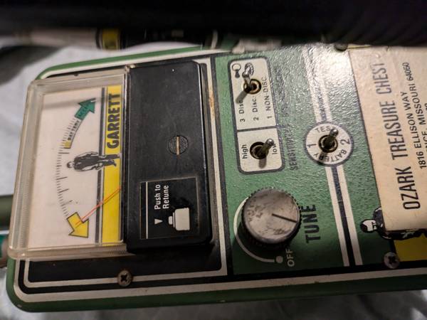 Vintage Garrett metal detector, in good condition, works, go out and start finding gold today, text only