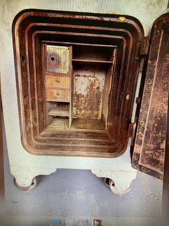 Have a very large heavy vintage safe maybe from the 1900's. I do have the combination to it. There are 4 heavy duty casters on the bottom. Everything works. Could use some cleaning up and paint. See pictures for details. I do have a skid loader here to load. Take $350 cash in person. No holds, trading, or shipping.