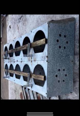 (POOS)(PRE-Owned) Vintage CHICKEN NESTING coup (Has x10--bins) Atleast 55+++ years old NEEDS SOME TLC / Cleaning Galvenized Metal w/ (x2 -- LONG WOOD bin HANDLES) ***SEE PHOTOS*** --as-is-- ***SEE...