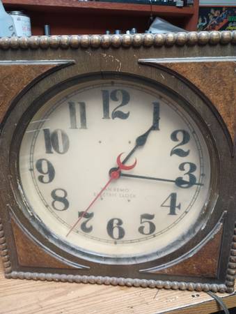 Vintage clock still works needs cleaning antique Will also trade for old coins Please send contact information I'll call