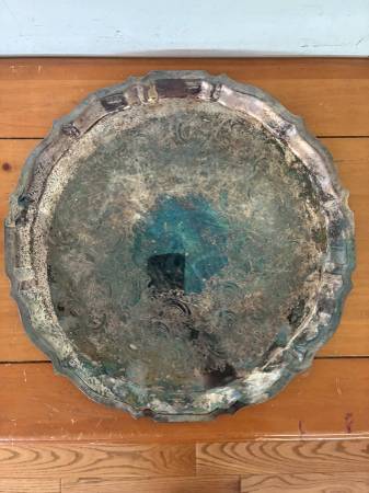 Antique Silver Plated Round Tray /Platter "GORHAM" 13 3/4" diameter. This is engraved on back EP YC 674-1. Front is etched with design. A few fine scratches. I live close to south county mall in...