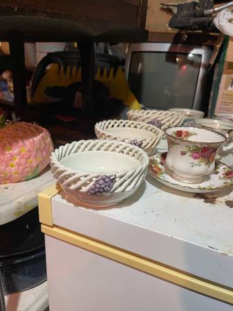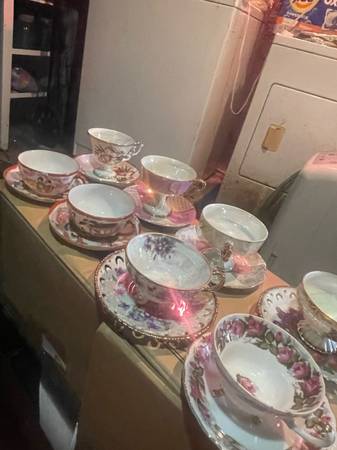 30 antique cups, and saucers, three creamers, three sugar, bowls, seven tea pots $400 Obo