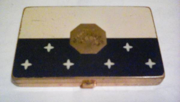 Vintage 1930s 1940s Houbigant Women's Powder Compact Art Deco Blush & Powder , w/ Basket on Top Blue and White Enamel Stars Made in USA ... (French Co.) .. Most Are Made in Paris ! $40. .