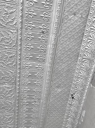 Ceiling is still installed, nearly complete, and in fair condition. Painted surface; ready for restoration or salvage. Seller is remodeling the building and open to trades for material.