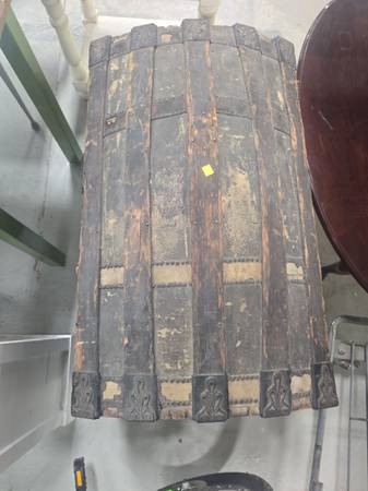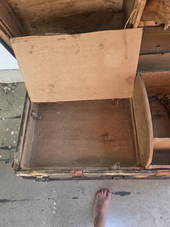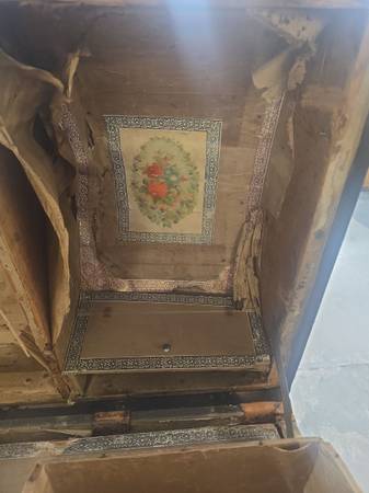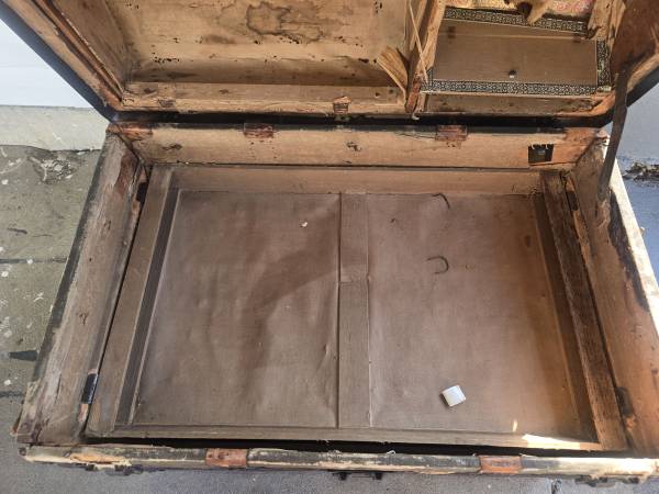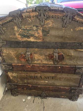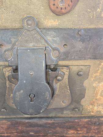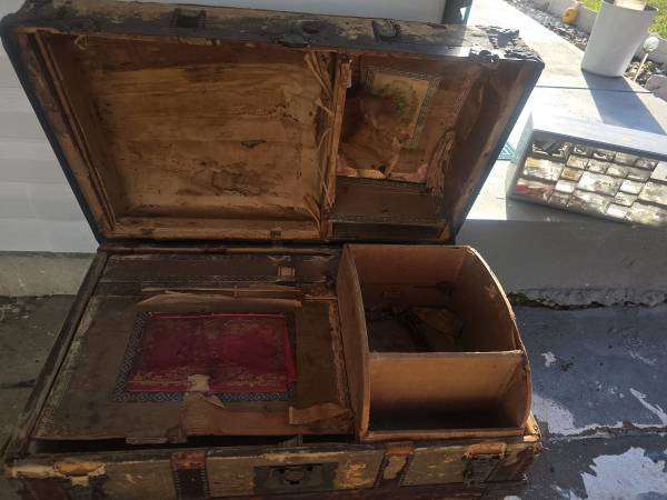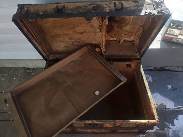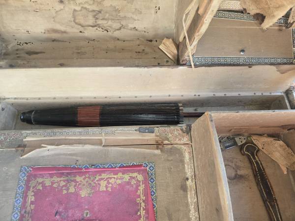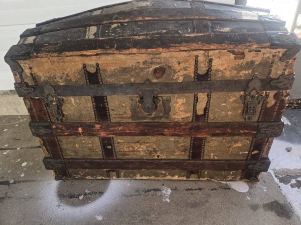 I purchased this antique Trunk and it had the umbrella in it. The trunk was purchased locally. I have taken pictures of the trunk and loaded them on ChatGPT. This is the information it has provided. Trucks like this were from 1870-1930 and the label style is with that period. The trunk is probably from C.A. Taylor Trunk CO. It has a dome-top (camelback). It has ornate pressed tin hardware. It has removable trunk inserts which were included in higher-quality trunks. The fact that the lining is still intact adds historical value.