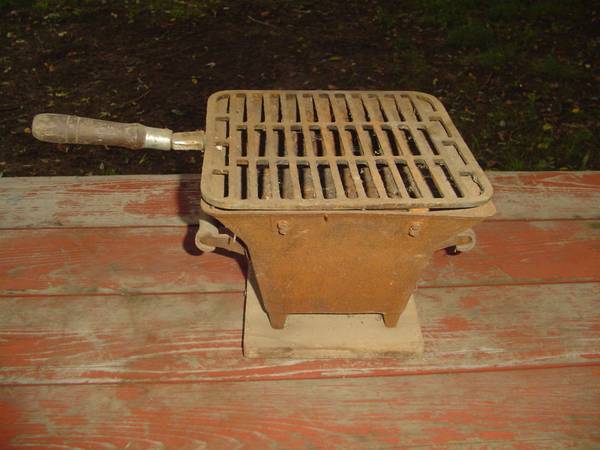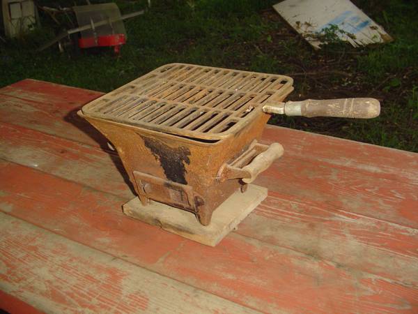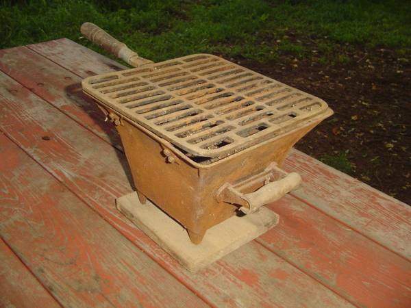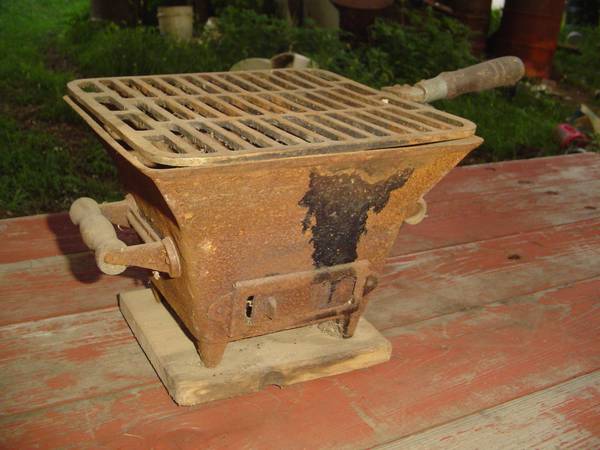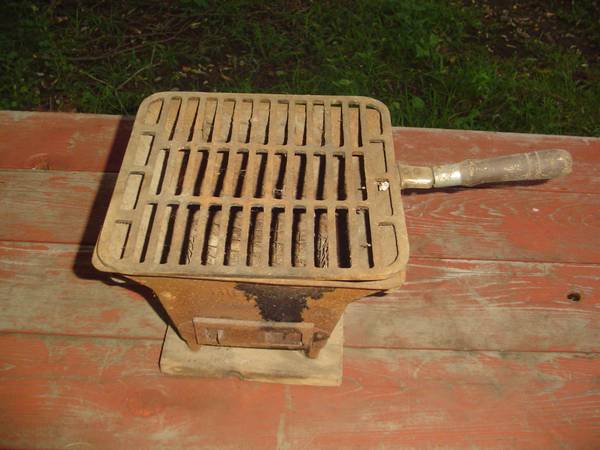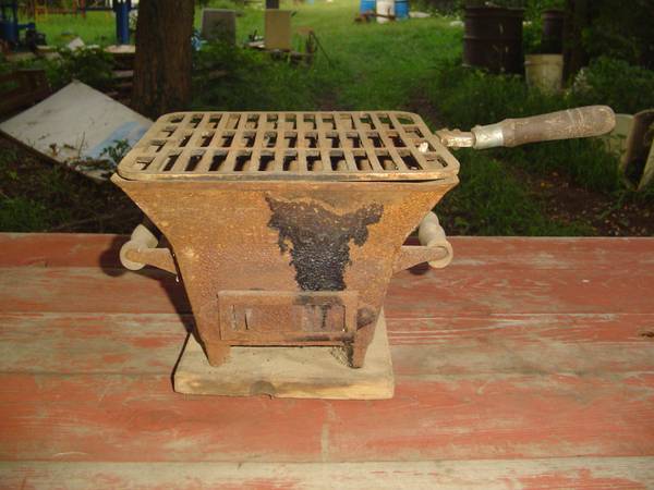 I am selling this vintage Hibachi Bbq Camp Cast Iron Stove for $100. It is 8 inches tall and 10 inches wide by 10 inches wide not including the handle in the measurement. I am located in Sullivan...