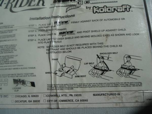 child/infant car seat, good condition, also makes a great booster seat at the dinner table. see photos Stuffed Santa Doll for illustration only, not included. Contact Tony