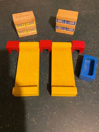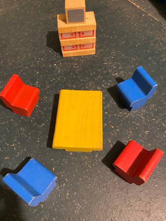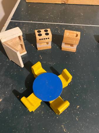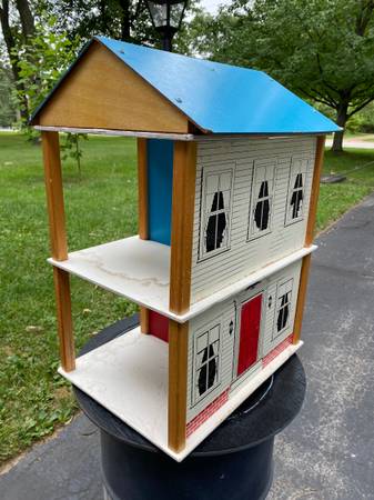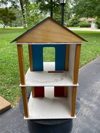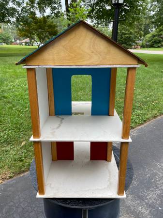 Wooden 4 room doll house, 16” wide, 12” deep, 21” tall, have accessories that go with it too,
