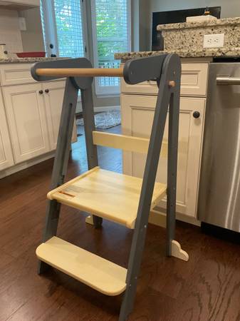 Perfect shape. Grandkids moved and no longer need. Great for the kitchen, so the little ones can help. Sturdy and folds up for storage. Currently selling on Amazon for $109.00....