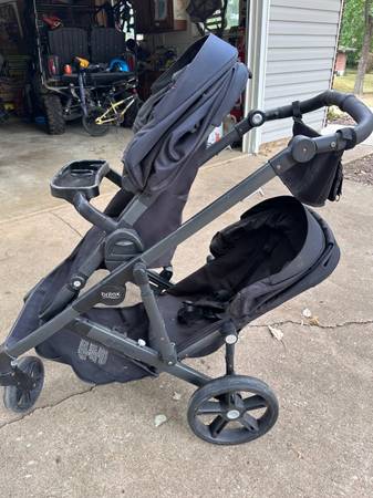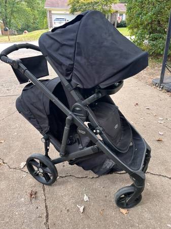 Britax single or double stroller. Can also fit the b safe car seat on the top slot. All black. Good, used condition. Has been in storage so needs to be cleaner but no issues. Has an extra cup holder attachment for the front seat and also for the person pushing the stroller. Let me know if you have any questions.