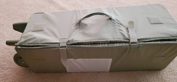 Folds up easily for compact storage. Once folded, wrap the mattress pad (soft side inwards) around the playard, fasten the straps and place into easy-carry storage bag.