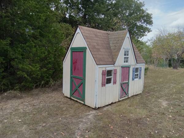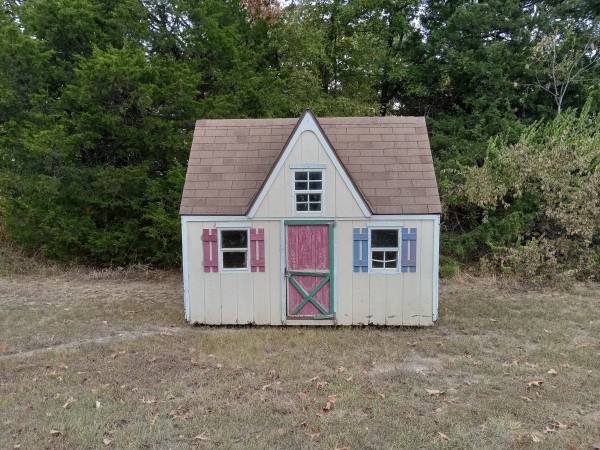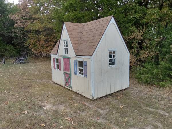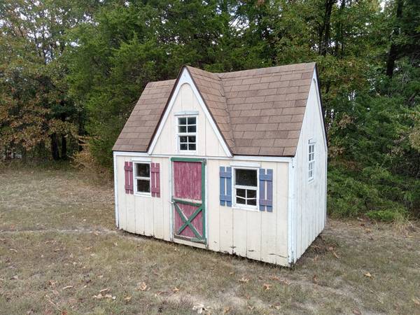 I have a Child's Playhouse Portable Building with Loft for sale, my kids have out grown it and want to sell it, 6ft wide x 10ft long x 9ft tall, very solid condition but could use some trim work, new paint would go along way, easy to move with a car hauler/flat bed style trailer with a winch or roll back tow truck, located in St Clair Mo with plenty of room to load, first $1,650 cash takes it