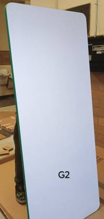 -10 new in the box Artco Bell 30x72in school tables with grey speckled tops and color bands (2blue, 2 red, 2 green, 2 yellow, 2 lavender). These tops came new in boxes. The legs, which ship separately, were lost, but I have legs for them. $100 per table