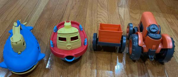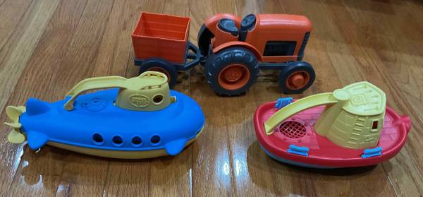 I have a set of 3 Green Toys Orange Tractor Vehicle + Tug Boat + Submarine, Only selling for $15. Reply to this thread or text me at show contact info