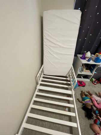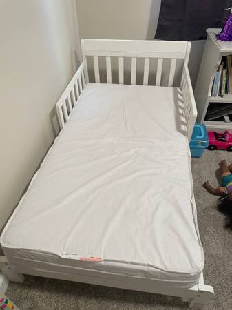 White toddler bed with mattress Both are in great shape $30.00 or best offer Pick up 63129 Cash only 314-650-573four
