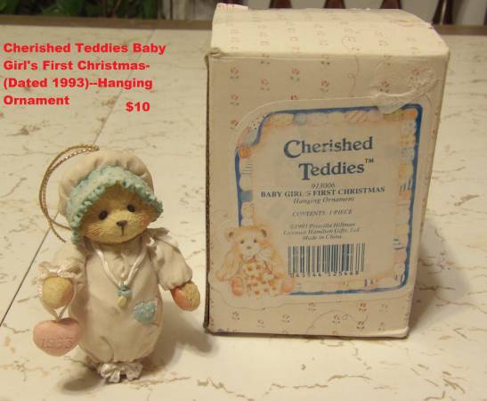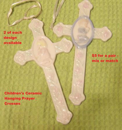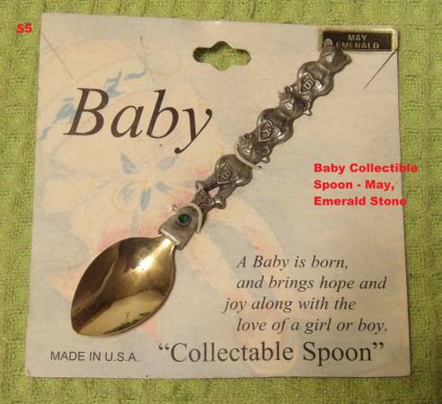 New Baby Gifts: $5-$10 each Collectable Spoon - May Birthstone $5 1993 Cherished Teddies Girl's first Christmas $10 Baby Wall Plaque for Boy $10 Prayer Crosses - For a pair $5 Psalm 139:4 Decorative...