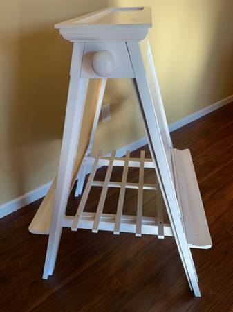 Pottery Barn no longer carries this model. They have a less attractive one now (included in the attached pictures), and it is much more flimsy when you compare the two of them (see the picture with the $199 price on it). This piece was over $300, but we are willing to pass it on to another family at a deal.